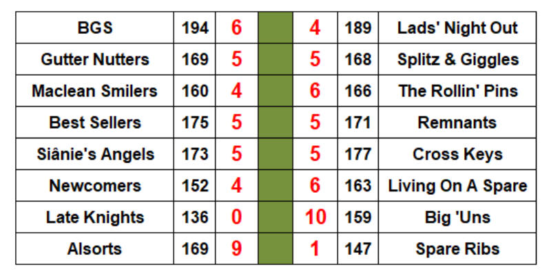 5th saw Big ‘Uns hit the heights, posting 40 pins (their best leg of the season) as they completed the whitewash.