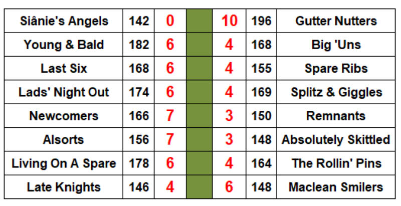 Angels. Gutter Nutters’ big victory moves them to just two points behind the leaders.