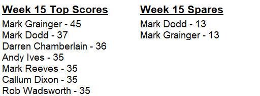 victory. Mark equalled Rob Wadsworth’s seasons-best 45 from last week, hitting a 13 spare in the