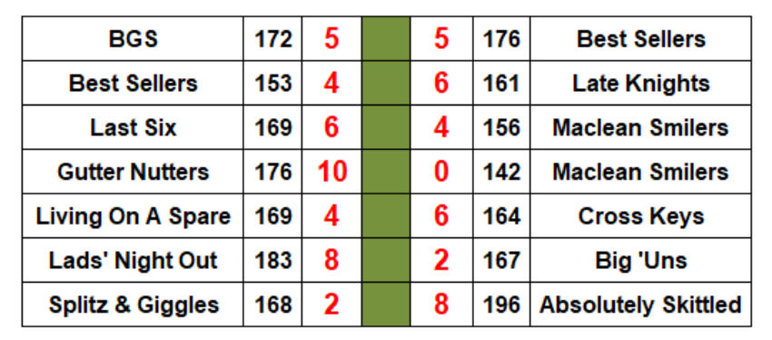 The other three games affected things at the top of the league this week. Gutter Nutters whitewashed Maclean