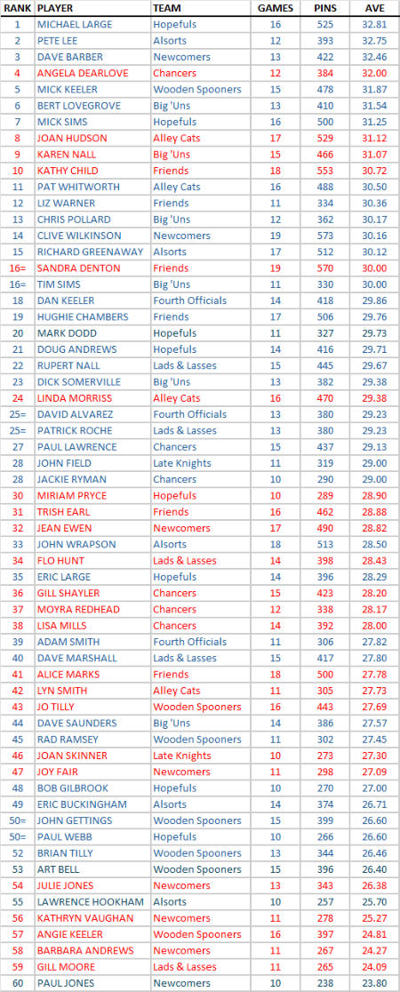 INDIVIDUAL AVERAGES
