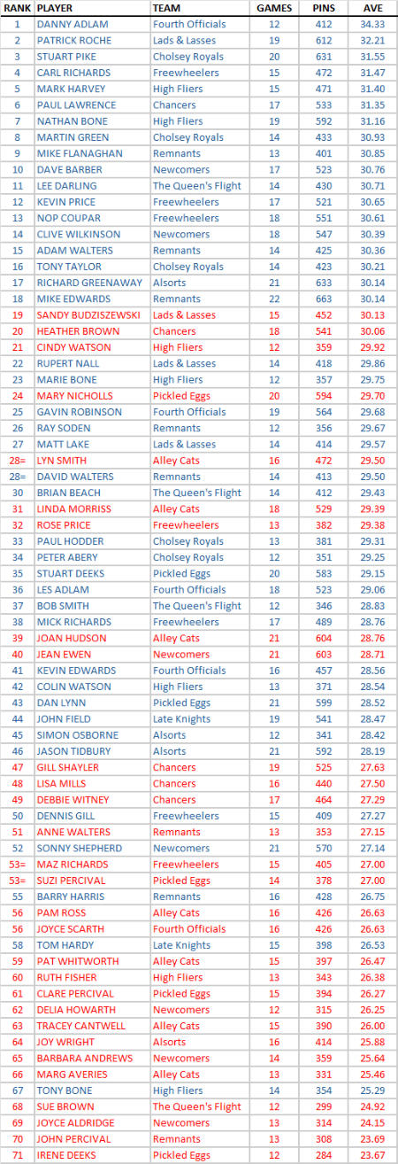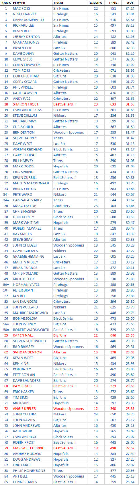 INDIVIDUAL AVERAGES