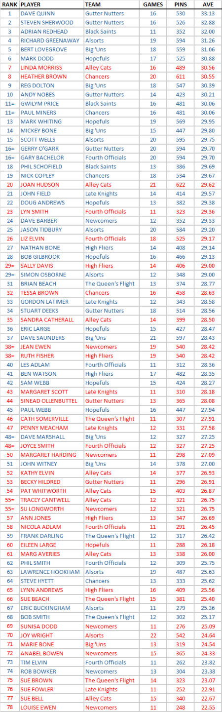 INDIVIDUAL AVERAGES