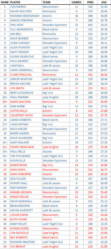 INDIVIDUAL AVERAGES