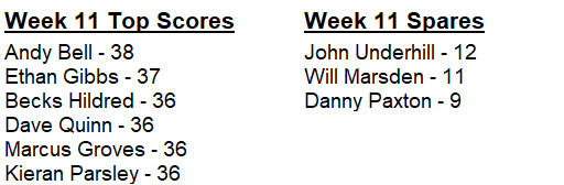 time as they won out 40-37. Great individual scores in this one - Andy Bell hit the score of the week with 38, Kieran