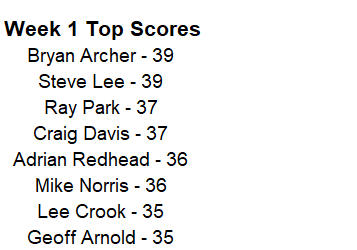 well spent. Craig Davis (37) and Mike Norris (36) had great games, whilst Angie Keeler (34) was Last Six’s best