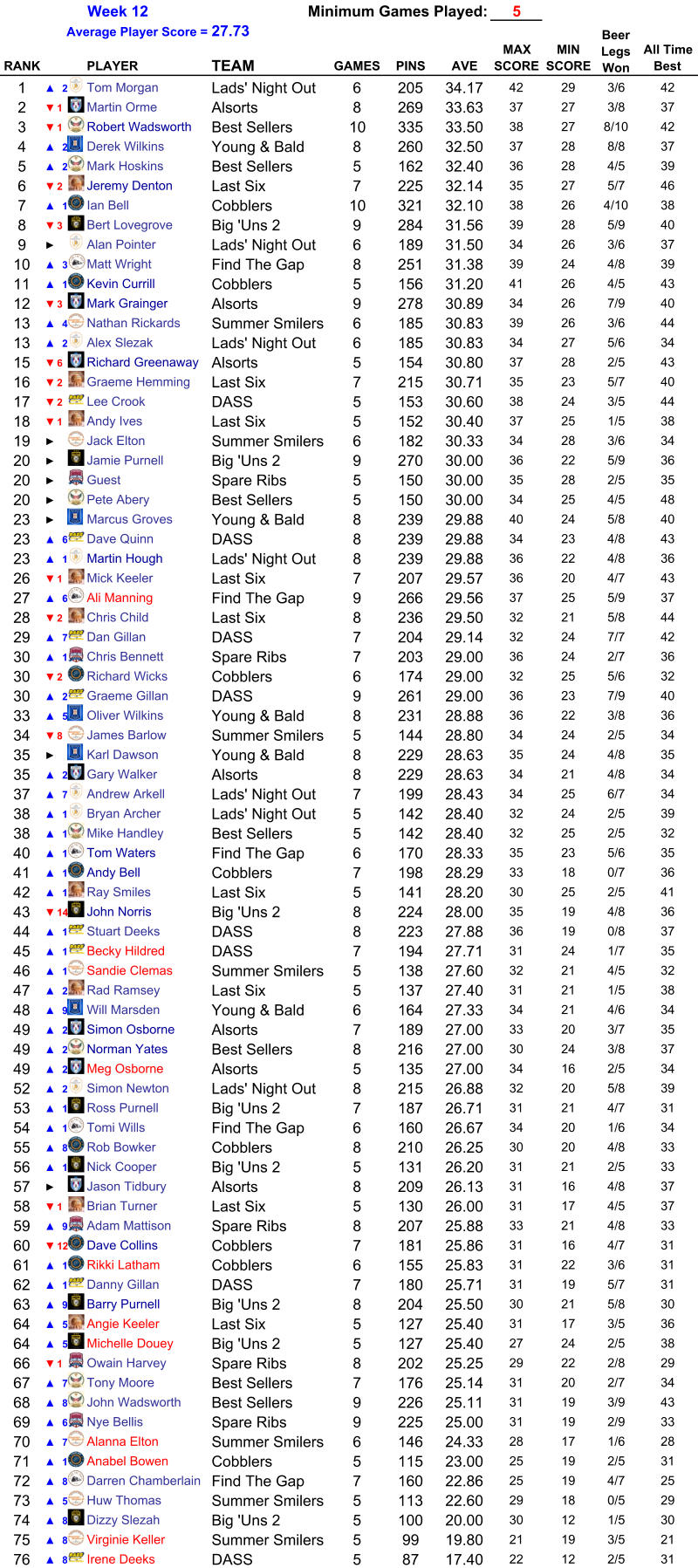 Minimum Games Played: